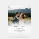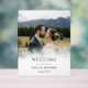 Casual Photo Overlay Modern Script Welcome to Wedding. Modern minimalist style to greet your guests. Simply replace the sample photo with your own which is behind a graduated tinted layer where the text is partially overlaid onto it. Edit the text as required.