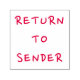 This rubber stamp design features the message "RETURN TO SENDER" in a casual font. It could be used on letter mail that has been delivered but for which the recipient is unknown.