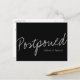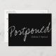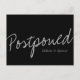 Drop your guests a quick note to let them know you've had to change your wedding date or postpone your party with this simple black and gray postponement or cancelled wedding postcard featuring a fun, casual hand-lettered script. The classic design includes a modern handlettered quote typography overlay. For other colors or matching products, please visit the JustFharryn Zazzle store, or contact the designer, c/o Fharryn@yahoo.com All rights reserved. #bohochic #zazzlemade