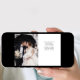 This simple, black and white wedding announcement features modern, casual script typography that says "we tied the knot", with a multi photo grid of five photos on the front and one more on the back. A stylish way to let friends and family know about your elopement or that you are just married.