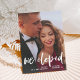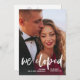 This simple and modern wedding elopement announcement card features a personal wedding photo on the front, with the words "we eloped" in casual, white handwritten script. The back of the card has room for another photo, plus room to either elaborate on your elopement details, or provide details for an after wedding reception or celebration. A whimsical and stylish design that is the perfect way to let friends and family know you are just married!