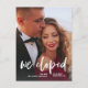 This simple and modern wedding elopement announcement postcard features a personal wedding photo on the front, with the words "we eloped" in casual, white handwritten script. The back of the card has room to either elaborate on your elopement details, or provide details for an after wedding reception or celebration. A whimsical and stylish design that is the perfect way to let friends and family know you are just married!
