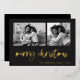 Casual Script Two Photo Grid | Merry Christmas Foil Holiday Card
