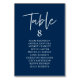 Wedding Dinner Guest Seating Table Chart Card, Modern casual Navy Blue Script.