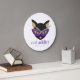 Cat Addict Cute Black Purple Gold Customized Name Large Clock