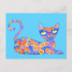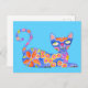 Postcard with multicolor cat inspired by Mexican alebrijes