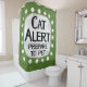 An irreverent and cute typographic animal design that says "Cat Alert, Prepare To Pet". It features black and red text on a white rectangle with funky, playful white dots surrounding it, all on a gray background.