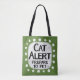 An irreverent and cute typographic animal design that says "Cat Alert, Prepare To Pet". It features black and red text on a white rectangle with funky, playful white dots surrounding it, all on a gray background.
