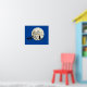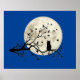 Cat and Birds with Tree Silhouette and Full Moon Poster