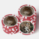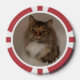 A set of poker chips featuring photos of a cat and a dog.