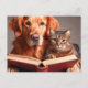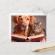 Cat and dog reading a book postcard