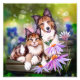Cat and dog sitting on a bench photo print