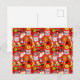 Cat and egg on red announcement postcard