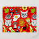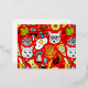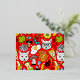 Cat and egg on red foil invitation postcard