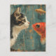 AI generated art of the cute cat looking at a large orange fish and a smaller grey fish