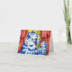 Card featuring Louis Wain’s animal painting Cat and Her Kittens (1860-1939). An anthropomorphized blue mother cat holds one of her blue kittens. Two additional kittens sleep in a basket. A wonderful gift for cat lovers and English art.
