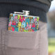Well made flask, a little better than I had expected. Flask came in clear plastic box which gave it a nice presentation when I took it out of the zazzle packaging. Image is not printed on flask but on sticker. Don't know how this will hold up I haven't used it yet. This would make a Great gift! I plan to purchase more for friends! Cheers. I thought a little brighter than computer. Very crisp, writing wasn't