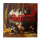 Ceramic Tile featuring Henriëtte Ronner-Knip’s oil painting Mother’s Pride (1821-1909). A mother cat sits on a red chair and watches her five kittens playing on the chair and the golden curtain. A fantastic gift for cat lovers and Romanticism enthusiasts.
