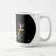 This design features a brown mouse giving a grey kitten a wrapped gift. A menorah with candles is glowing in the dark. The kitten is laying on a pillow. The year 2014 is printed on the top of this design. These mugs are available in assorted styles, colors and sizes.