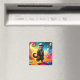 This magnet has an artsy cat on it.