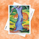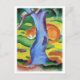 A fine art postcard featuring the painting, Children's Picture - also known as Cat Behind a Tree (1912) by the German expressionist artist Franz Marc (1880-1916). A ginger-colored cat sleeping behind a blue tree in the grass. Marc used primary colors in his expressive paintings. He was also a member of the Blue Rider Group of artists.