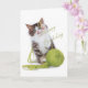 adorable little kitty plays with yarn, the inside message is encouragiing and says you're only as old as you feel, acute birthday card for anyone