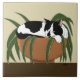 Cat Black White Plant Funny Ceramic Tile