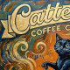 This unique illustration showcases a charming cat interacting with a French press, all set against a backdrop of delightful coffee art. The piece has been thoughtfully crafted using AI technology and enhanced with genuine textures for a captivating, realistic feel.