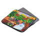 Laptop Sleeve featuring Louis Wain’s animal painting Master of Cat College (1860-1939). A thoughtful white cat with striking blue eyes sits ponderously next to a vibrant assortment of beautiful flowers. The majestic cat college looms in the background underneath a pink and blue sky. A wonderful gift for cat lovers and English art.