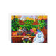 Postcard featuring Louis Wain’s animal painting Master of Cat College (1860-1939). A thoughtful white cat with striking blue eyes sits ponderously next to a vibrant assortment of beautiful flowers. The majestic cat college looms in the background underneath a pink and blue sky. A wonderful gift for cat lovers and English art.