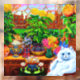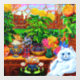 Window Cling featuring Louis Wain’s animal painting Master of Cat College (1860-1939). A thoughtful white cat with striking blue eyes sits ponderously next to a vibrant assortment of beautiful flowers. The majestic cat college looms in the background underneath a pink and blue sky. A wonderful gift for cat lovers and English art.