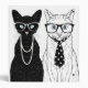 This design features a black female cat dressed up in pearl necklace and white male cat dressed up in dotty tie.