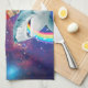 Cat Cowboy riding a Shark spewing a Rainbow Kitchen Towel