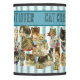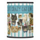 If you like cats you will LOVE this design! Multitudes of authentic Victorian die-cut scrapart clips used to design this lamp shade with "Cat Crazy Cat Lover" graphic lettering against a quaint teal ticking pattern.