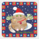 This Merry Christmas sticker has a tiled frame with cute little stars and christmas trees. The cat with Santa hat in the middle is drinking a cocktail and eating a snack with cheese and a fish. The stylish 3-d text "Merry Christmas" is part of the design.