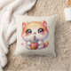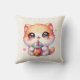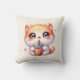 Cat Drinking Boba Cute Bubble Tea Throw Pillow