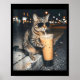 Cat Drinking Iced Coffee Funny Animal Meme Men Wom Poster