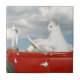 White kitty cat takes off driving an old model A car combined photo's ceramic tile