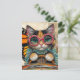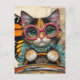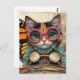 An adorable cat fairy with butterfly wings wears oversized polka dot glasses and drives a car cute mixed media style collage