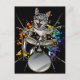 Punk Rockstar Kitten Kitty Cat Drummer Playing Drums Graphic design Gift Postcard Classic Collection.