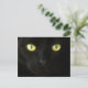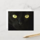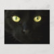 Color photography customizable postcard featuring close-up portrait of a jet black cat with beautiful green eyes.