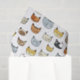 A collection of funny cat face doodles, with fur coloured in unique shades and markings and arranged into a repeatable pattern. These cat faces were originally hand drawn with pen & pencil and then transferred to a vector format for large scale prints!