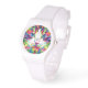 I was pleasantly surprised by the good quality of this watch. It's an easy size to wear on a small wrist and both the band and the watch are well made. I also liked the translucent case the watch is packaged in. The printing is crisp and clear and shows off my Create With Photos oyster flower design well.