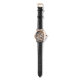 Has heft and feel of expensive stainless steel quartz watches. Good band with safety catch. I removed links, which is easy because engraved arrows show direction to push the linking pins. As always by this seller, the image (a railroad logo) is a perfect reproduction of my emailed image, and is precisely spaced and aligned.
