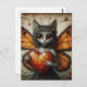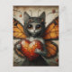 An adorable cat fairy with butterfly wings wrapped in thorns and holding a cracked blown glass heart