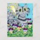 This beautiful little grey-striped cat fairy is sitting in a field full of the charming flowers commonly known as Johnny jump-ups, also called wild pansies. The entire scene is set against a cloudless blue springtime sky and surrounded by a detailed border matching the colors in the flowers.