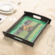 This is a well made, sturdy wooden tray with a flawless black finish and lovely map on the tray surface. It is both vintage & modern at the same time. Looks exactly like the photo; does not disappoint. So nice to find something of quality individually made and not the mass-produced 'shabby chic' merchandise seen in stores. I am so pleased to be able to give this to my college-age niece for her birthday. This can be used as a tray to hold jewelry or toiletries, or hung on the wall as art. The map surface is sealed (it is slightly shiny) so would be moisture resistant. It is well worth the asking price but I was able to apply a sale code as well. Very happy with my purchase. Map is crisp & clear and sealed with a water-resitant finish.