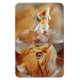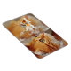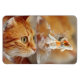 Photo print is shown on a flexible magnet of a cat watching a fish jumping out of bowl.