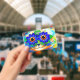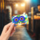 Badge featuring Louis Wain’s animal painting Cat Flower Eyes (1860-1939). A rainbow cat widely grins. Blue flowers cover his eyes. A wonderful gift for cat lovers and English art.