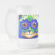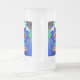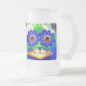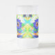 Frosted Glass Beer Mug featuring Louis Wain’s animal painting Cat Flower Eyes (1860-1939). A rainbow cat widely grins. Blue flowers cover his eyes. A wonderful gift for cat lovers and English art.